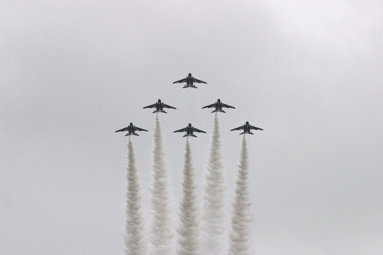 Blue Impulseは低い雲のためにアクロではなく6機による編隊飛行のみ実施。最初はデルタ・パス