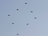 T-4×8機によるバーティカル・ダイヤモンド編隊で、各列にはかなり高度差がある難しい隊形