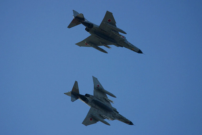 編隊飛行展示の最後はオーバーヘッド・アプローチ。翼下タンクを搭載している如何にもF-4らしい姿