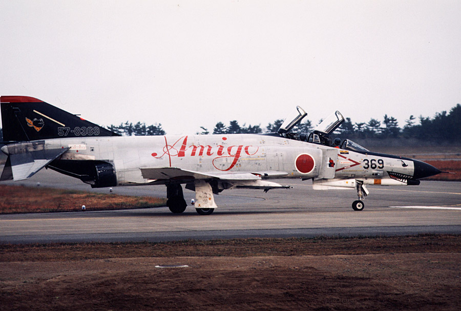 | 1989年11月 | 戦技競技会天候不良により中止となる(小松基地)。 この年の301飛行隊のマーキングはファンの注目を集めた。 機種に赤い目をしたシャークマウス、尾翼は黒く塗りつぶし、何より目立ったのが胴体部分に大きく書かれた「Amigo」の文字! 301飛行隊の戦競への意気込みが伝わってくるマーキングでした。 |